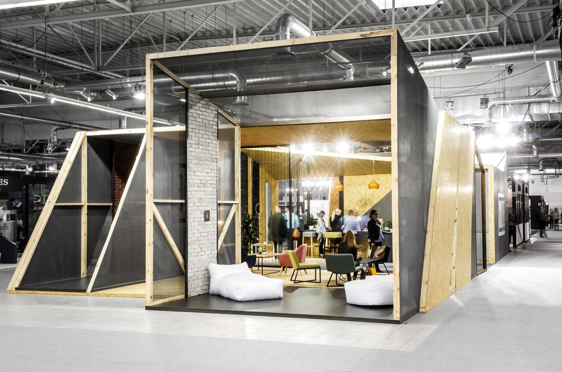Architekci z mode:lina™ stanęli przed zadaniem pogodzenia ze sobą potrzeby stworzenia w pełni otwartego na gości targowych pawilonu, który jednocześnie zapewni prywatność podczas biznesowych rozmów. Odpowiedzią na to stały się dynamiczne podziały stoiska, które pozwoliły na stworzenie przestrzeni idealnych do rozmów. Projektanci, dzieląc bryłę na mniejsze części, stworzyli także liczne wejścia i przejścia, dzięki którym pawilon zachował swoją otwartą formę.