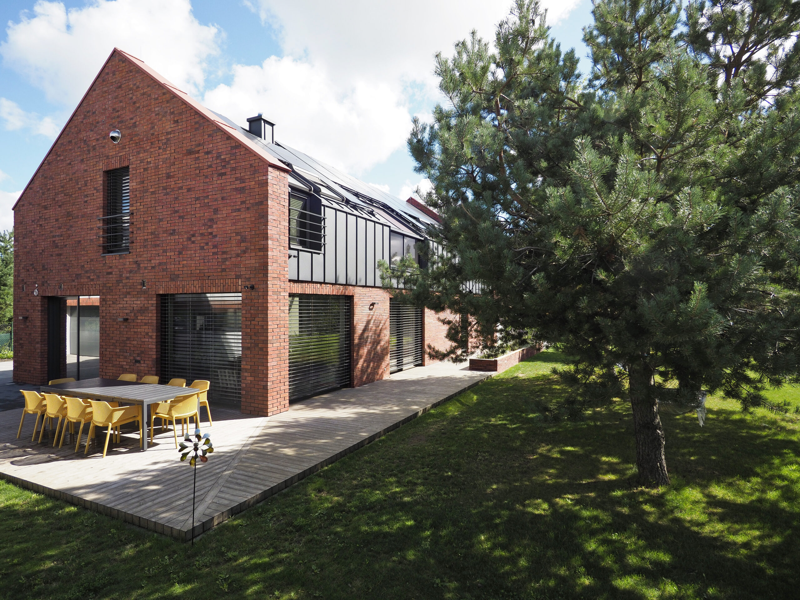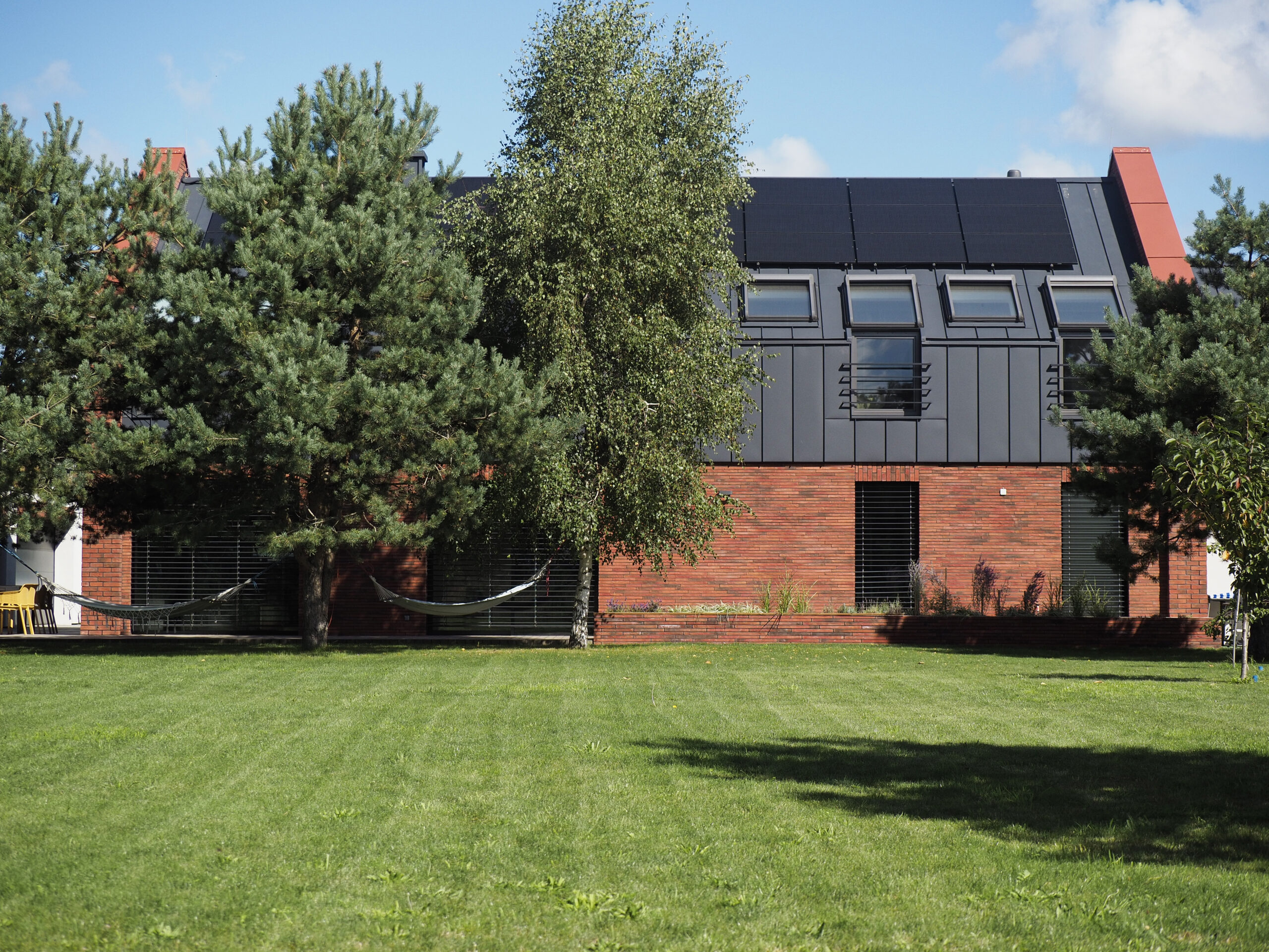 Ten dom to siedlisko na miarę XXI wieku. Z piętra rozciąga się fantastyczny widok na okolicę z jeziorami, a przydomowa szklarnia zapewnia nowalijki przez cały rok. Wpisany w przepięknie położoną działkę, otoczony fragmentem starego sadu, jest spełnieniem marzeń o domu na wsi – ale blisko cywilizacji. Jesteśmy szczęśliwi, że mogliśmy dołożyć cegiełkę do stworzenia tak klimatycznego miejsca.