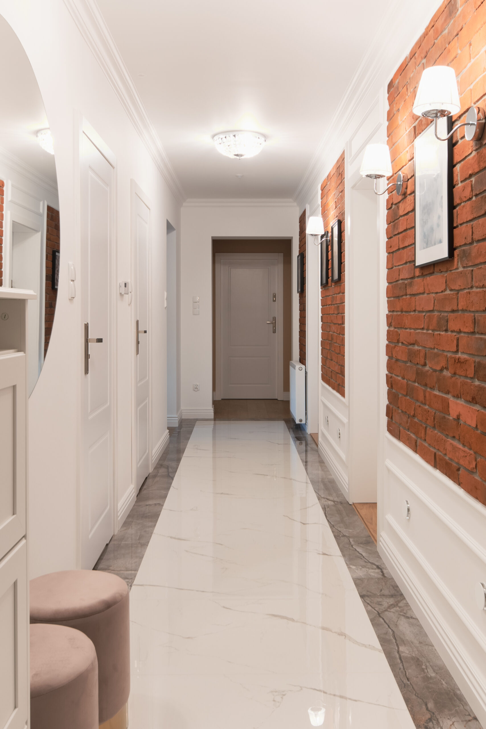 - Chcąc jak najlepiej zachować klimat przestrzeni zdecydowali się na bardzo klasyczne wnętrze przełamane nowoczesnymi dodatkami. Całość miała jak najbardziej oddawać ducha tej przepięknej części Gdańska. W projekcie zostały zastosowane ciepłe, beżowe odcienie farb. Część ścian zostało pokryte tapetami z florystycznym wzorem, dekoracyjną sztukaterią oraz Starą Cegłą MILKE w kolorze naturalnym. Całość wyszła subtelna, klimatyczna i delikatna.