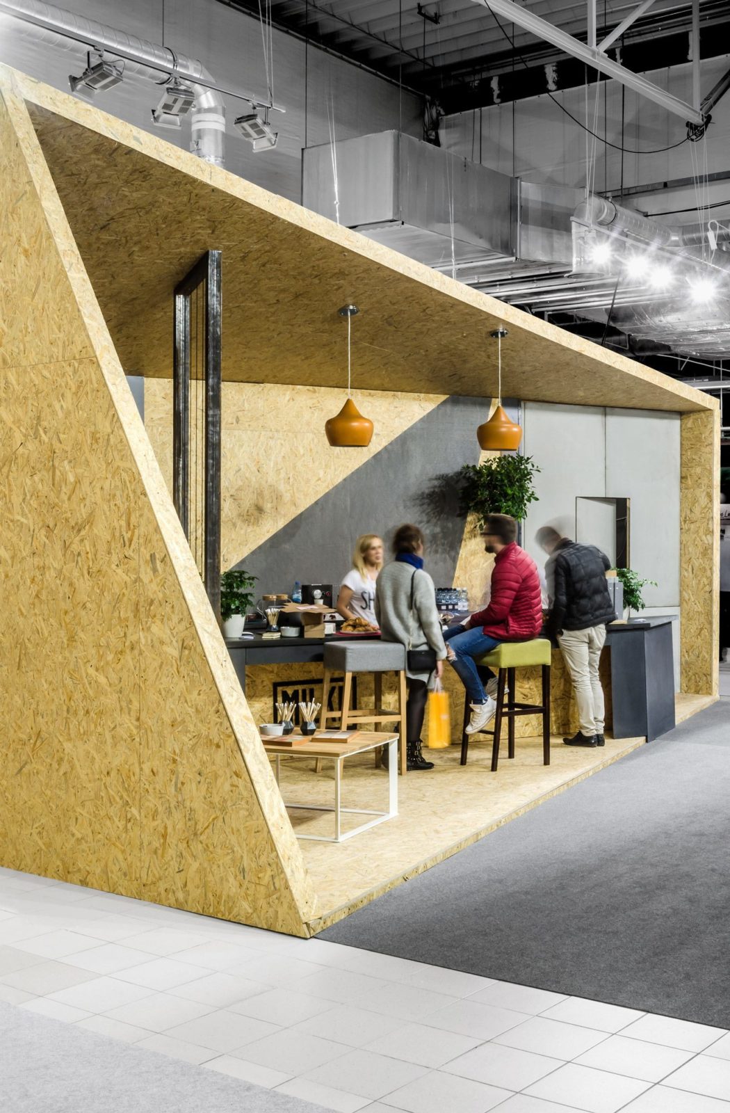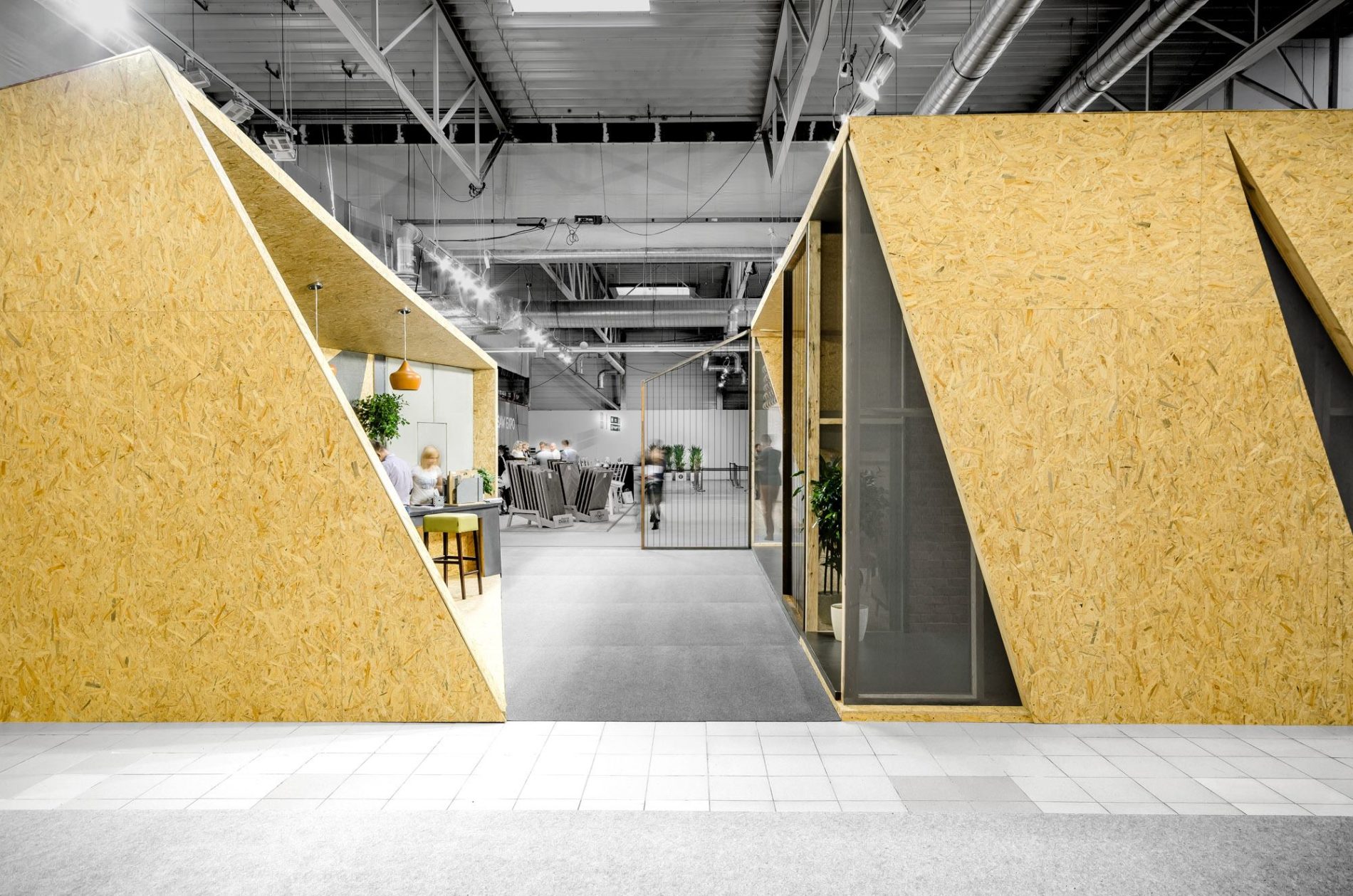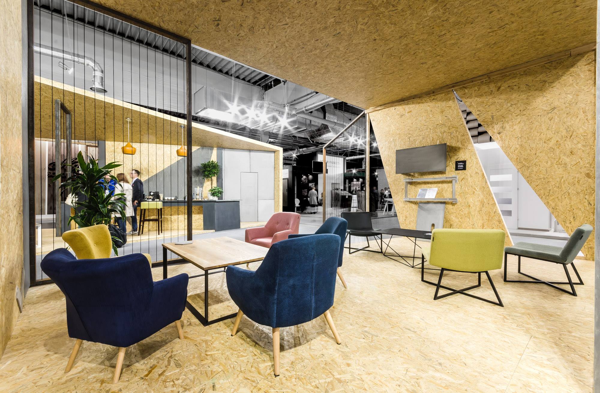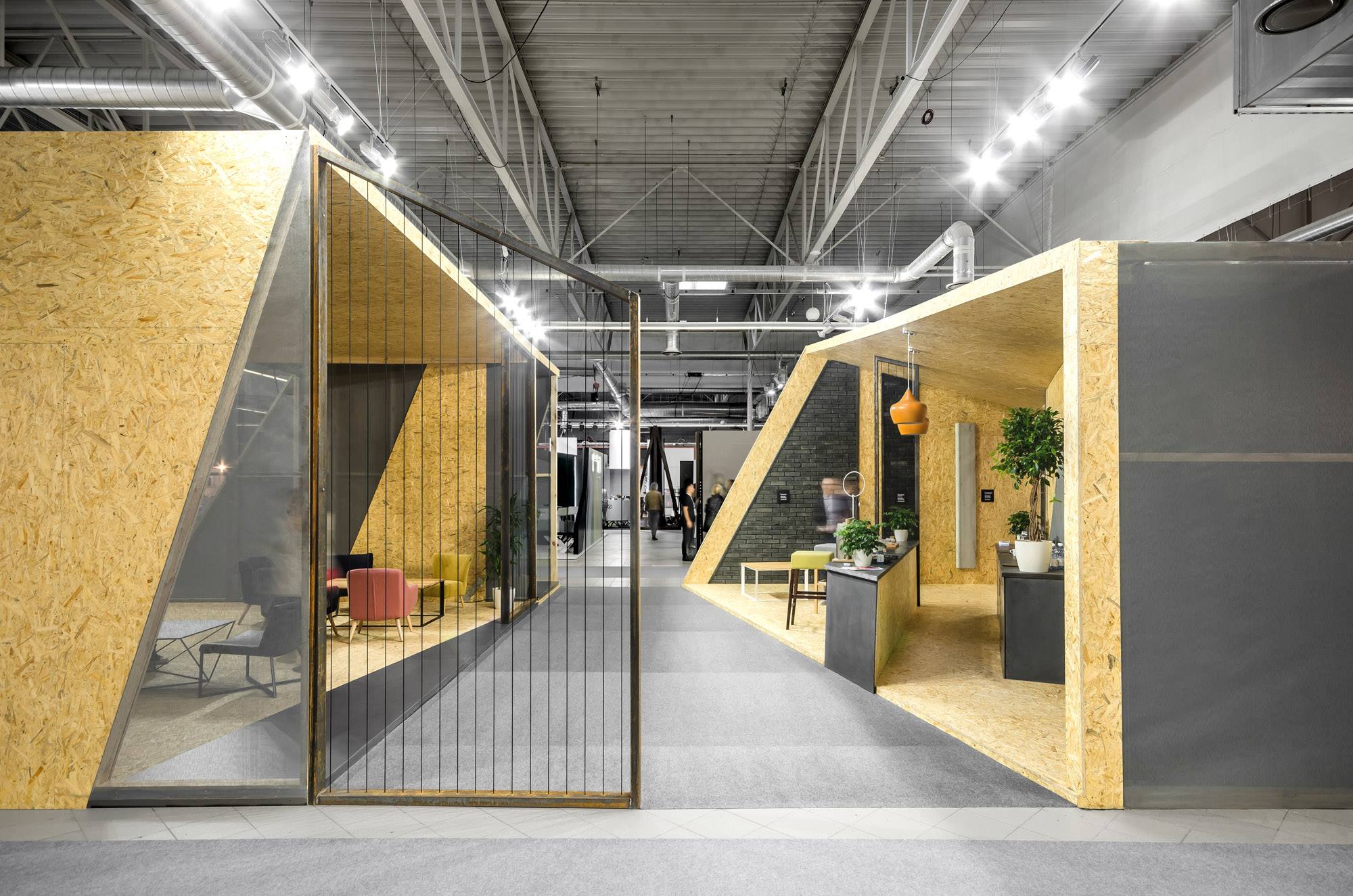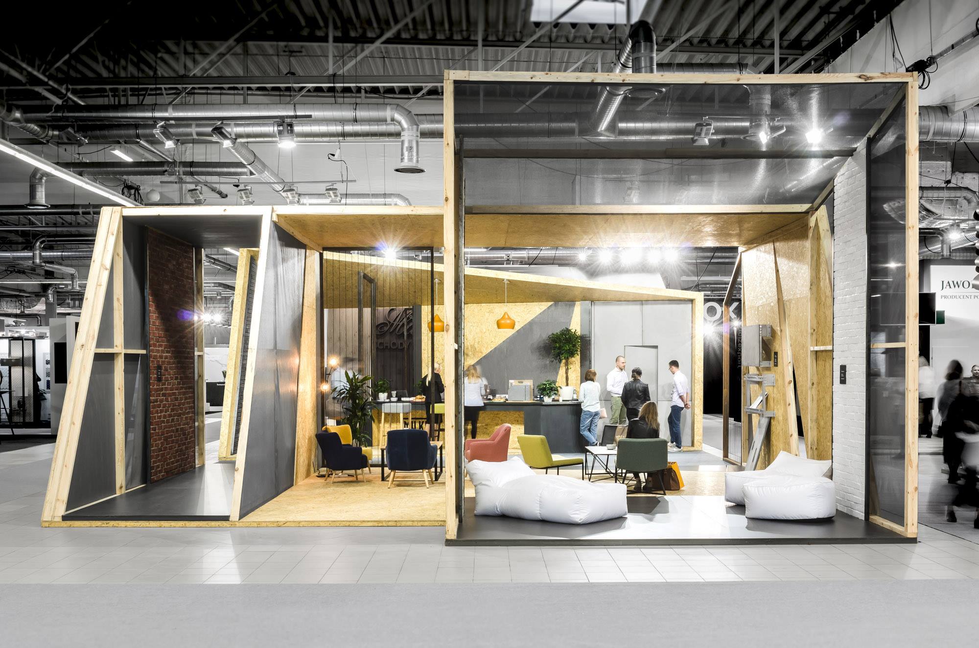 Architekci z mode:lina™ stanęli przed zadaniem pogodzenia ze sobą potrzeby stworzenia w pełni otwartego na gości targowych pawilonu, który jednocześnie zapewni prywatność podczas biznesowych rozmów. Odpowiedzią na to stały się dynamiczne podziały stoiska, które pozwoliły na stworzenie przestrzeni idealnych do rozmów. Projektanci, dzieląc bryłę na mniejsze części, stworzyli także liczne wejścia i przejścia, dzięki którym pawilon zachował swoją otwartą formę.