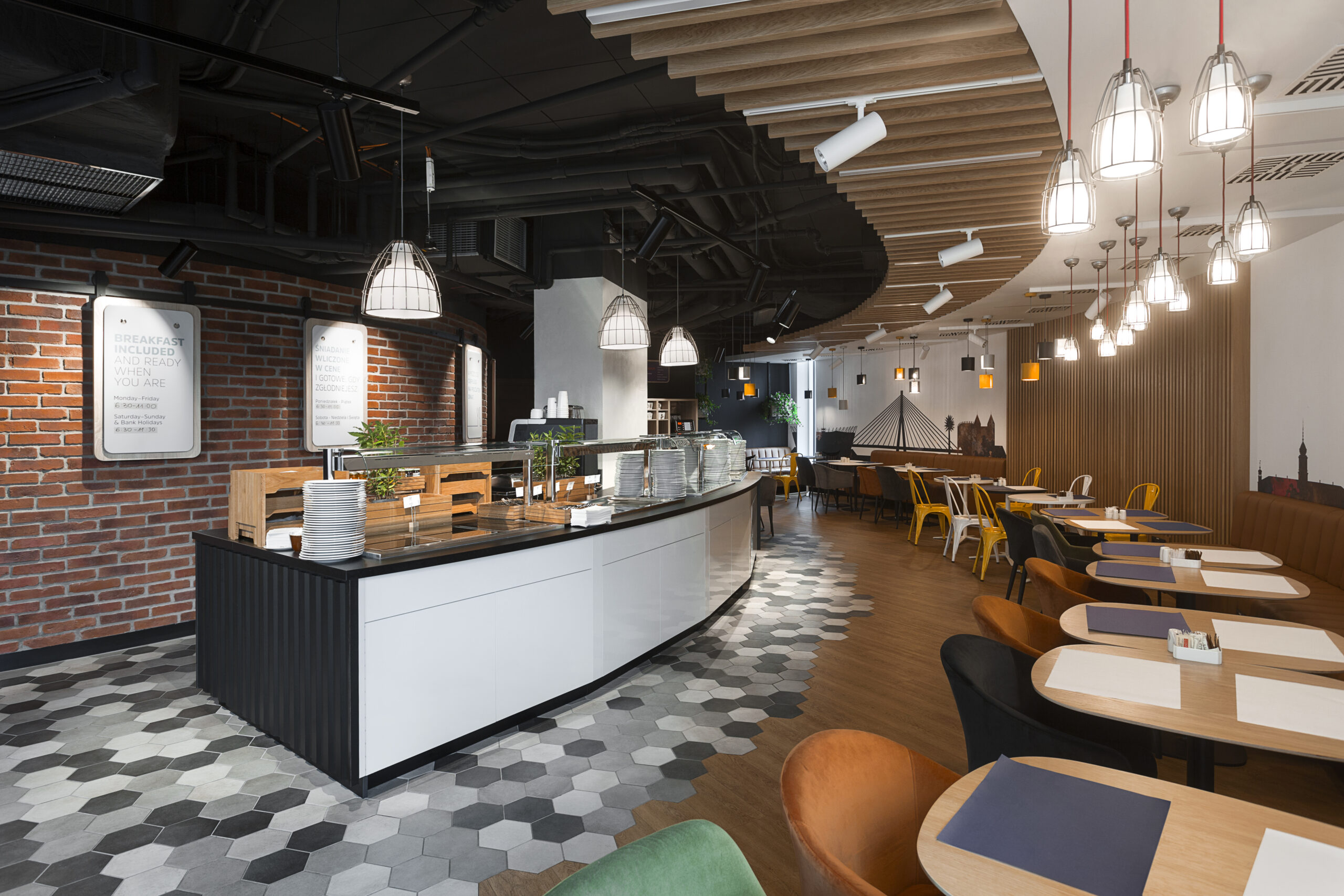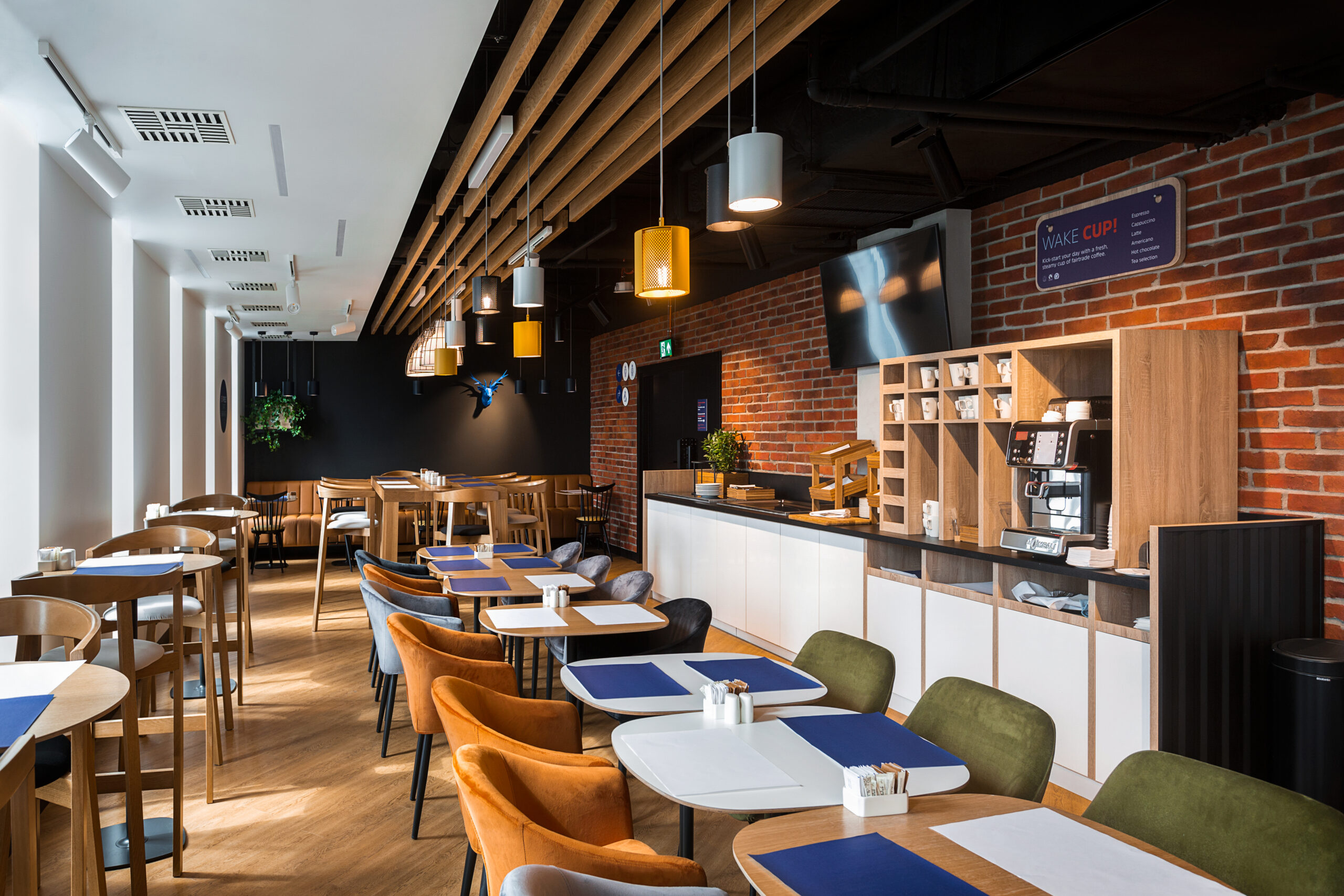 – Projektując HIEX, bazowaliśmy na standardach brandu, ale chcieliśmy osiągnąć także efekt WOW! Dostaliśmy zgodę inwestora na wprowadzenie kilku własnych pomysłów, dzięki czemu we wnętrzach pojawiły się lokalne nawiązania. Oczywiście, ważna była też funkcja – w bufecie zastosowaliśmy możliwość szybkiego przekształcenia w strefę coworkingu. W pokojach również znalazły się komfortowe miejsca do pracy, które mogą być przydatne podczas kolejnych fal pandemii. Całość jest kolorowa, energetyczna i wyrazista – opowiada o projekcie architekt Magdalena Federowicz-Boule, prezes zarządu Tremend.”