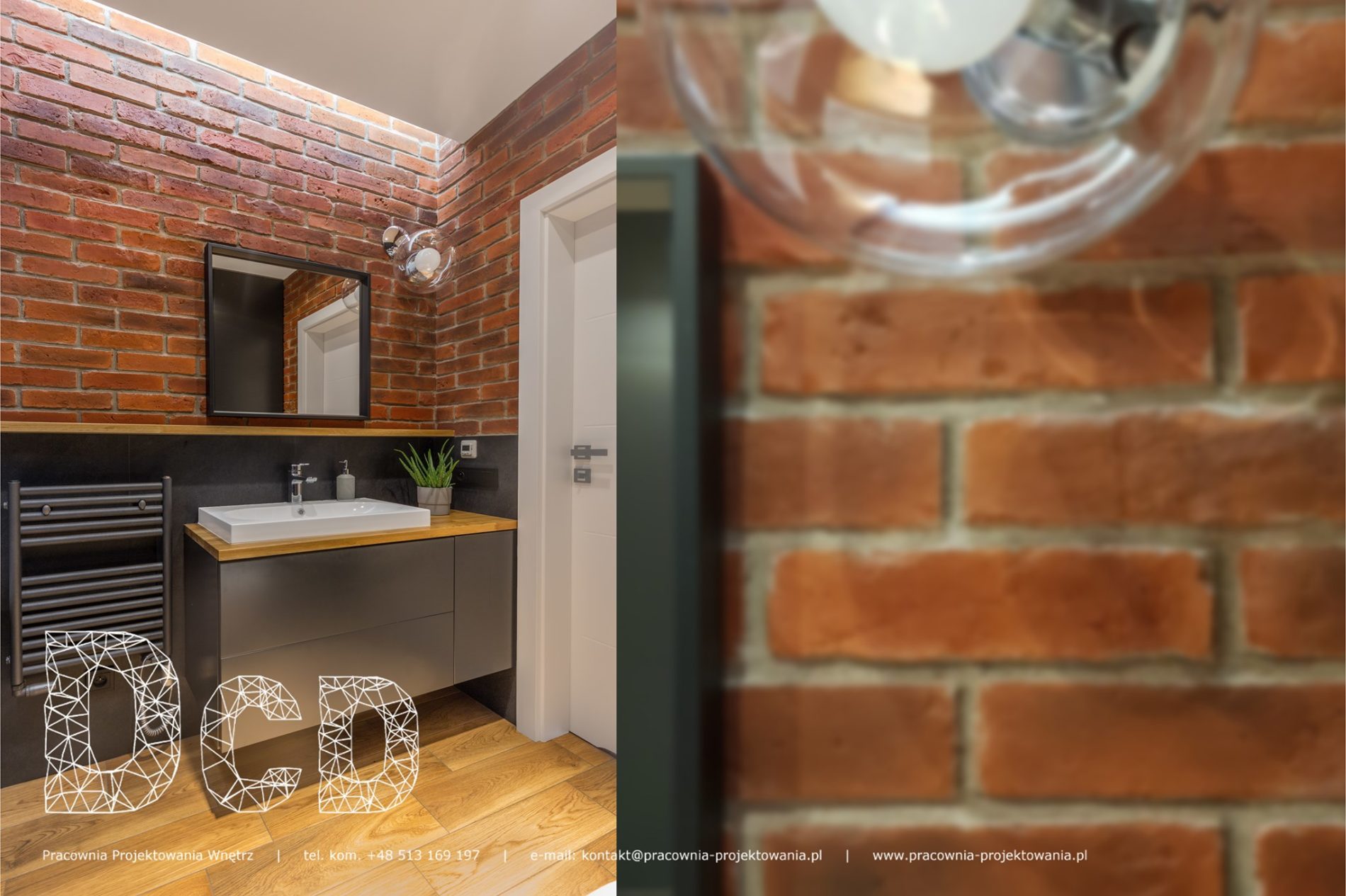 Projekt Pracowni Projektowania, gdzie nasza Stara Cegła została wykorzystana w nietuzinkowej łazience.