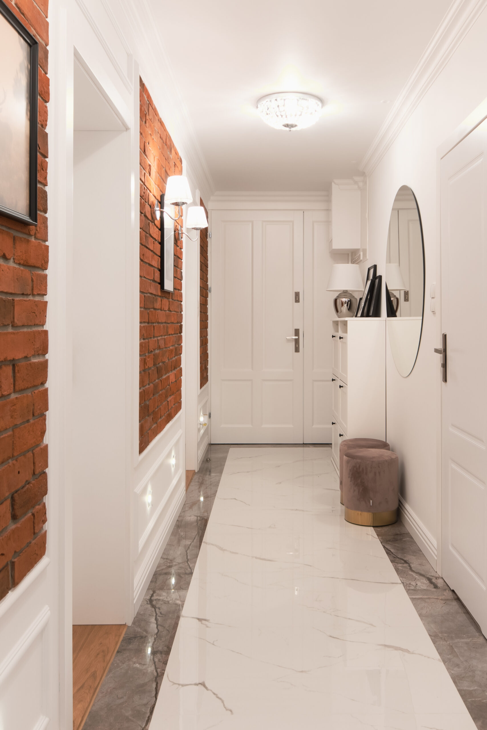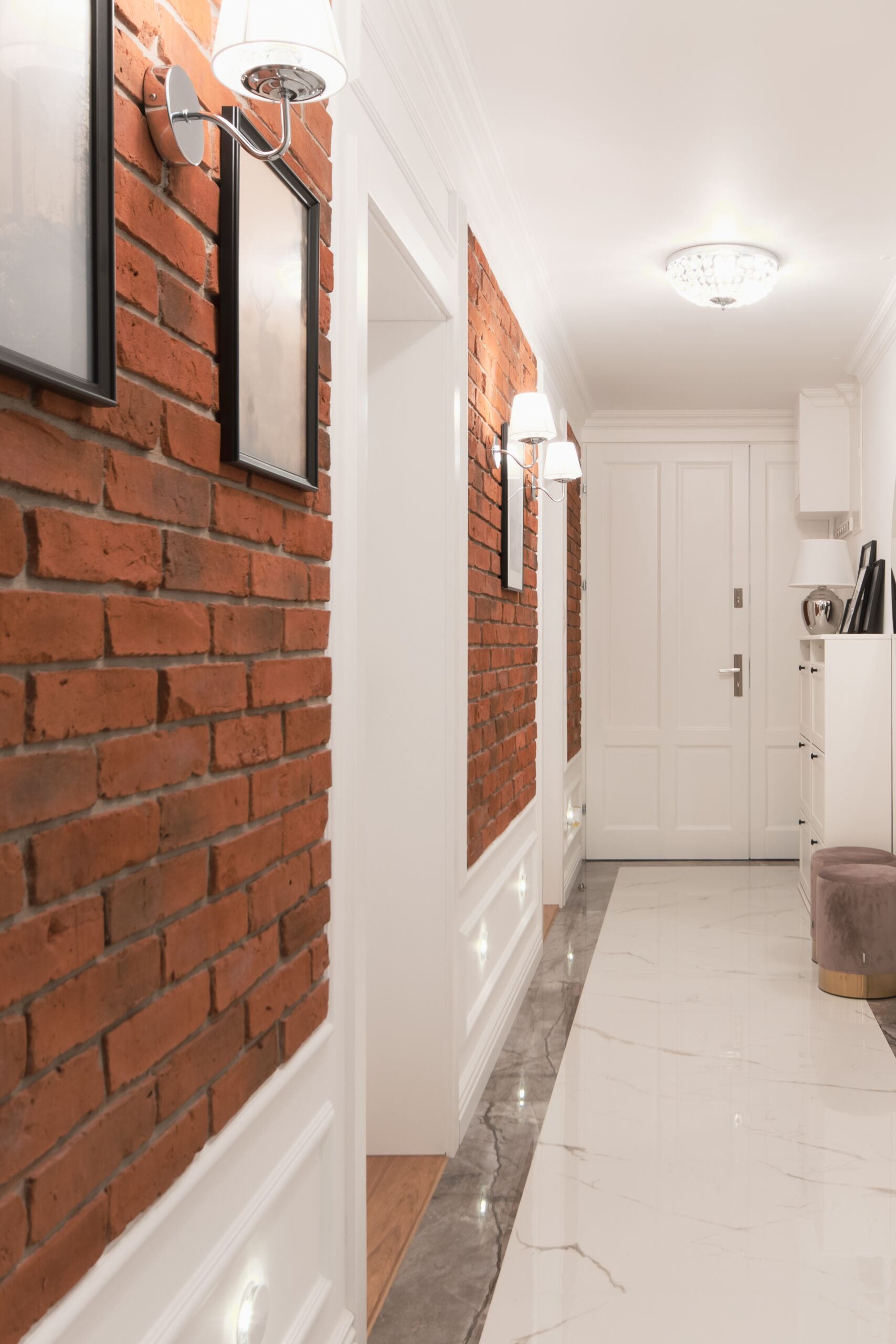 - Chcąc jak najlepiej zachować klimat przestrzeni zdecydowali się na bardzo klasyczne wnętrze przełamane nowoczesnymi dodatkami. Całość miała jak najbardziej oddawać ducha tej przepięknej części Gdańska. W projekcie zostały zastosowane ciepłe, beżowe odcienie farb. Część ścian zostało pokryte tapetami z florystycznym wzorem, dekoracyjną sztukaterią oraz Starą Cegłą MILKE w kolorze naturalnym. Całość wyszła subtelna, klimatyczna i delikatna.