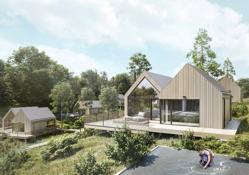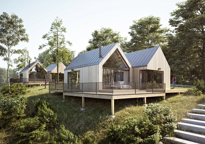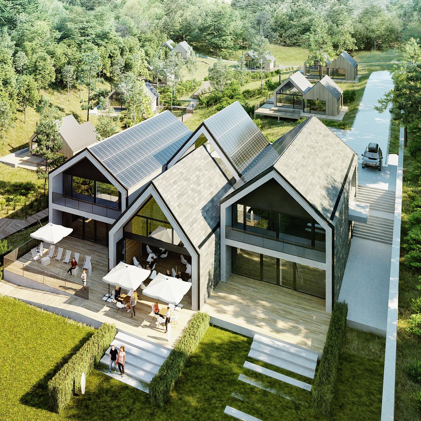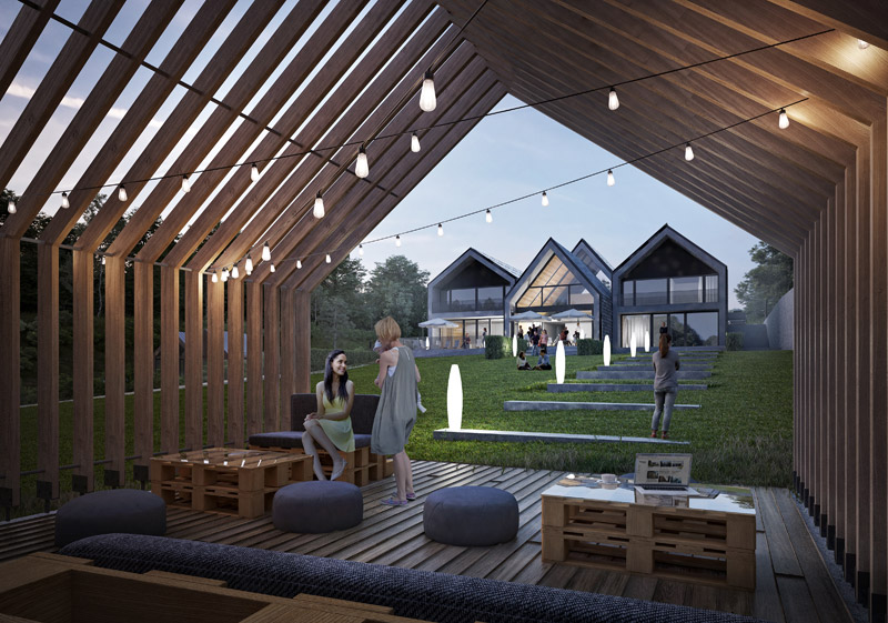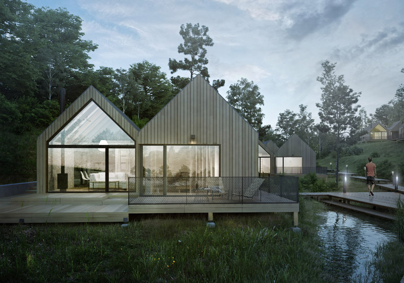 Domy rekreacyjne zaprojektowano jako proste, jednokondygnacyjne bryły składające się z dwóch takich samych części o dachach dwuspadowych…”