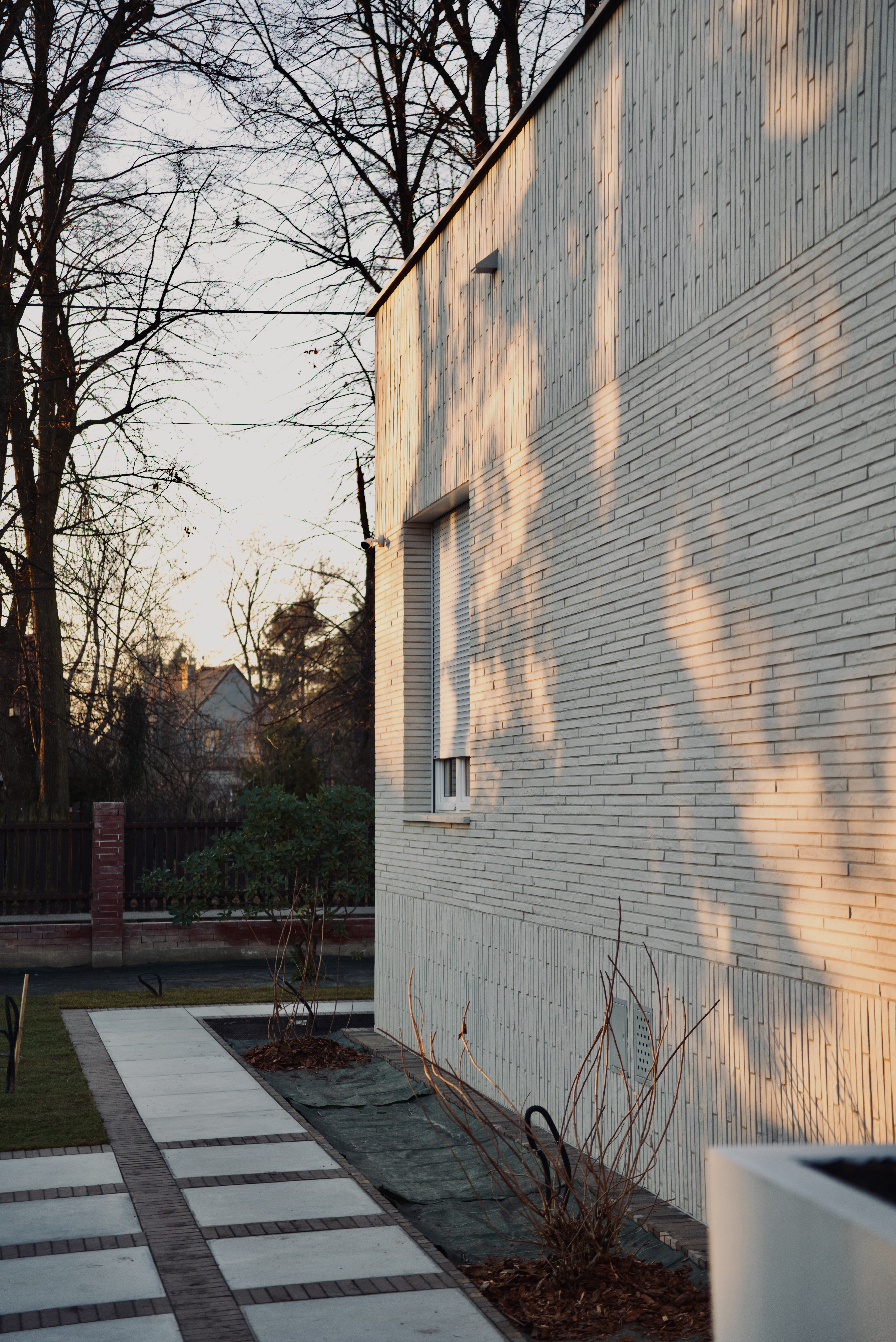 Do wspólnej przygody zaprosiła nas tu pracownia Konteksty Studio, gdzie ostateczną decyzją została wybrana płytka LONG klasyczny, w klasycznej bieli skalnej. Stonowana kolorystyka idealnie wpasowuje się w otoczenie, natomiast zabawia pionem i poziomem ułożenia cegiełek daje nam tu ten pierwiastek odwagi, którego wszyscy szukamy. Dzięki temu całość wygląda godnie, a i przyciąga oko przechodnia. Jak widać nowoczesny format długich cegiełek sprawdza się również w tematach z tamtych lat.